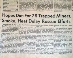 Photo by Bob Campion. The monstrous explosion struck the mine at 5:30 that morning, shaking the ground 12 miles away. Smoke and flames surged 150 feet into the