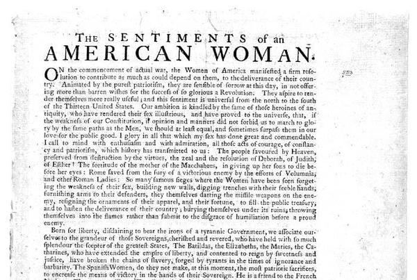presented by the Women who have the happiness to join to their patriotism, greater means to be useful." Sentiments of an American Woman launched the
